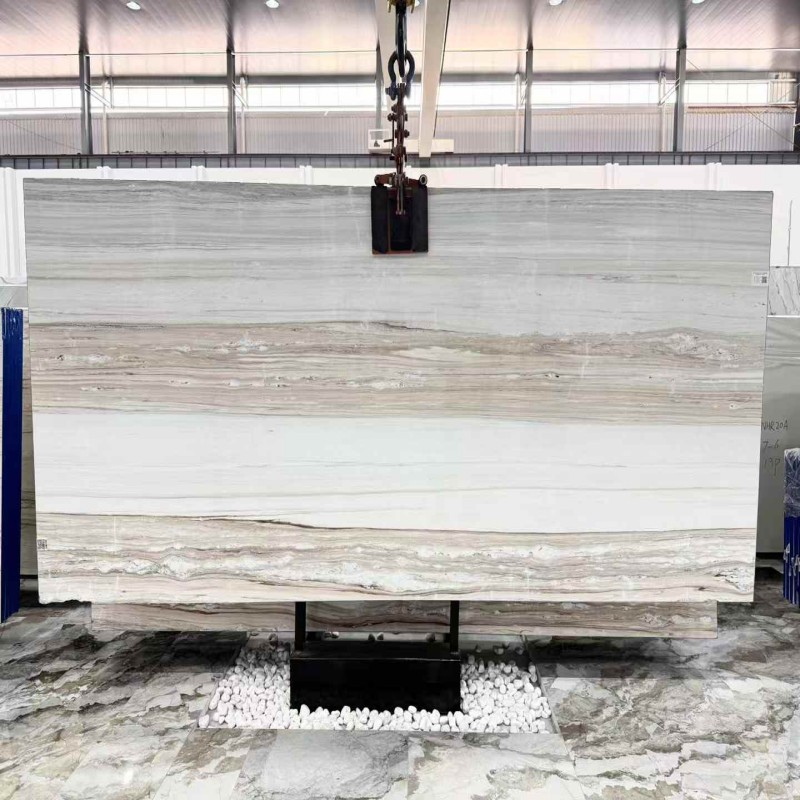 Palissandro Classico marble is known for its distinctive ivory and beige hues, which are braided with tasteful light brown and blue-gray stripes. A gentle transitional visual impression is created when the two colours naturally fade. There may be a gradation effect from beige to brown on some slabs. Palissandro white marble has a rich and diverse texture. Random, diagonal, and straight patterns are common varieties. A close examination of the Italy Palissandro Marble slab will reveal some stunningly gorgeous, brilliant granules that resemble diamonds. This is another feature of marble from Palissandro Classico.