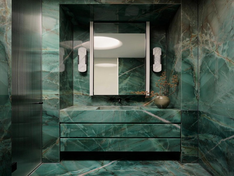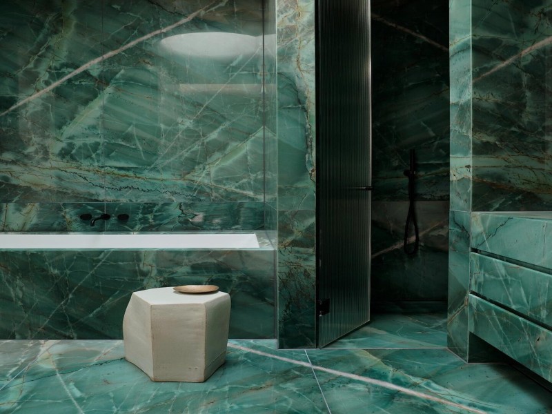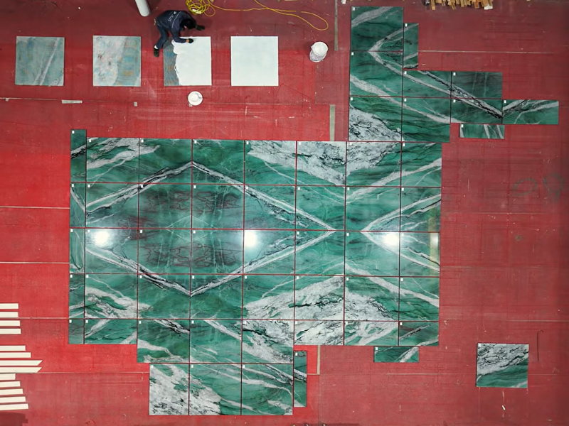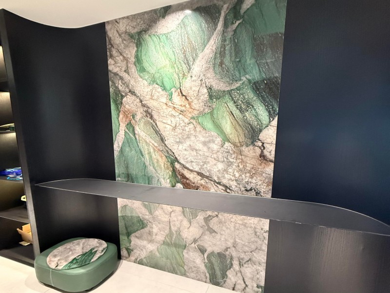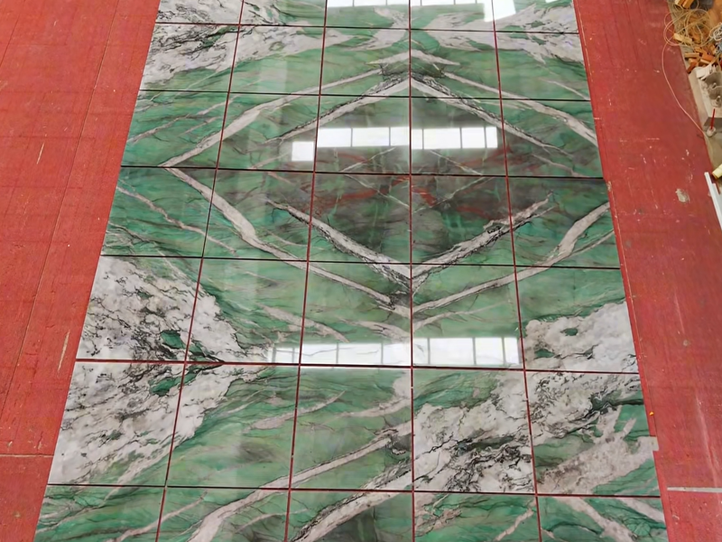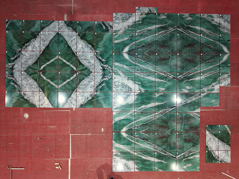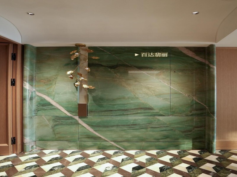 - Hotel Lobbies & Reception Areas: Striking green hues and natural veining create visual impact for floors, feature walls, and reception counters. Backlit feature walls or reception desks benefit from the semi-translucent veins.